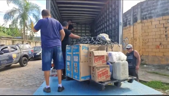 Entre os itens recuperados estão gerador a diesel, aparelhos de ar-condicionado, cabos elétricos, máquina de lavar, micro-ondas, televisores, ferramentas de manutenção e galões de combustível. Um caminhão da prefeitura foi acionado para recolher os produtos e encaminhá-los até a delegacia.
