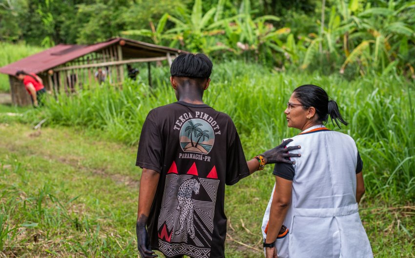 Nesta sexta-feira (27), representantes da Prefeitura de Paranaguá estiveram na Ilha da Cotinga para acompanhar a celebração cultural e os trabalhos de reforma da Casa de Reza da Aldeia Pindoty, um importante espaço sagrado da tradição Guarani.